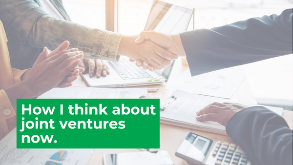 My view on joint ventures has changed. Not because they don’t work but because I understand more clearly what actually makes them work.
